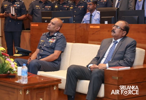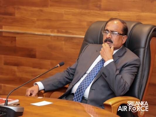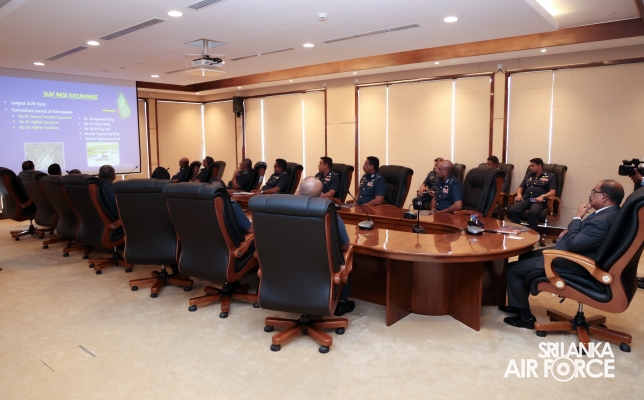 The visit continued with an overview briefing on the Sri Lanka Air Force, delivered by the Base Commander of SLAF Base Ratmalana, Air Commodore Asela Jayasekara. Subsequently, the Deputy Minister of Defence engaged in a discussion with SLAF Base Commanders and Station Commanding Officers via an online platform. This was followed by a meeting with the members of the Colombo Air Symposium (CAS) Secretariat, during which key operational and administrative matters were deliberated.