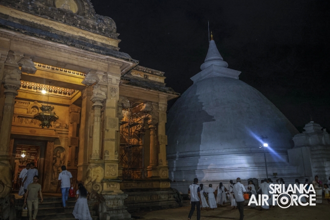 The Sri Lanka Air Force, which is gearing up to celebrate its 74th anniversary as the "Guardians of the Skies" conducted the "Pichcha Mal Pooja" at Kelaniya Raja Maha Viharaya for the eighth consecutive time. The event was organized under the auspices of the Commander of the Air Force, Air Marshal Bandu Edirisinghe yesterday evening (27 February 2025) by SLAF Headquarters Sri Jayewardenepura to invoke blessings for the SLAF personnel and the entire Air Force. The Chairperson of the SLAF Seva Vanitha Unit, Mrs. Krishanthi Edirisinghe also participated in the event.