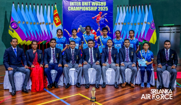 The Inter Unit Wushu Championship 2025 concluded yesterday (28 February 2025), at SLAF Base Katunayaka. The finals and awards ceremony took place at the SLAF Base Katunayaka Gymnasium, graced by the presence of the Director General Construction Engineering, Air Vice Marshal Chandana Geethapriya, as the Chief Guest.