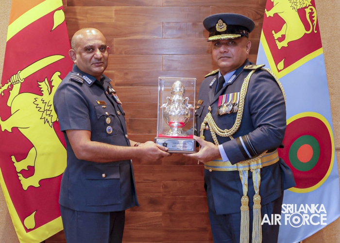 Air Vice Marshal Munasinghe made an official farewell call on the Commander of the Air Force, Air Marshal Bandu Edirisinghe, at his office. The Commander commended him for his dedicated service rendered to the nation and to the Sri Lanka Air Force in particular. The Commander also emphasized that he was one of the key stakeholders during times of need for our motherland and that his heroic history will remain etched in the annals of the SLAF. The Commander and Air Vice Marshal Munasinghe exchanged mementos to mark the occasion.