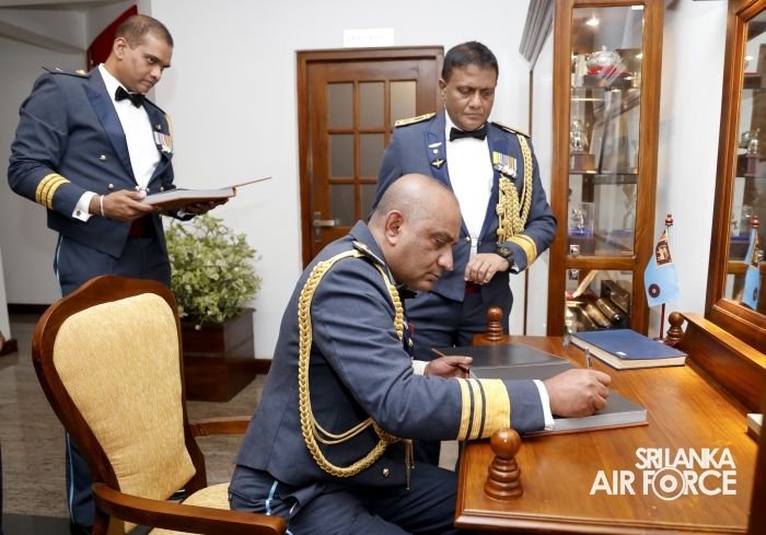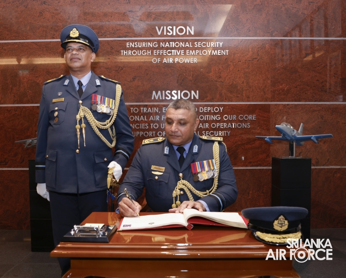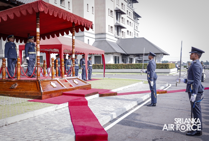 Subsequently, he was accorded a Ceremonial Guard of Honour by the SLAF Colour Wing before departing from Air Force Headquarters at Defence Headquarters Complex for the last time.