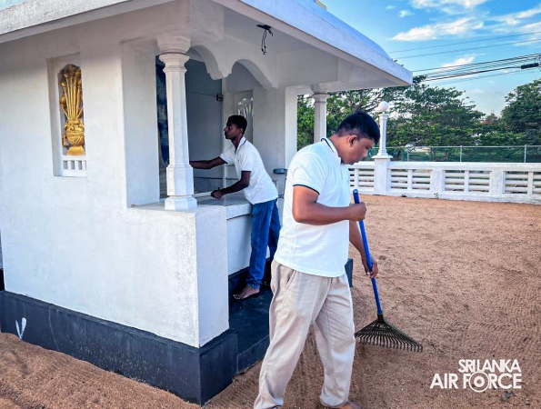 The No.01 Air Defence Radar Squadron (ADRS), stationed at SLAF Base Katunayake, celebrated its 19th Anniversary today (10 March 2025) with a series of religious activities. A 'Shramadhana' campaign was conducted at the “Sri Jayadarshanarama” Temple at Bolawalana, Negombo and a Pirith chanting for spiritual blessings of the squadron and personnel was conducted under the guidance of Commanding Officer, Wing Commander DRT Mallawaarachchi.
