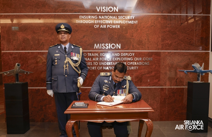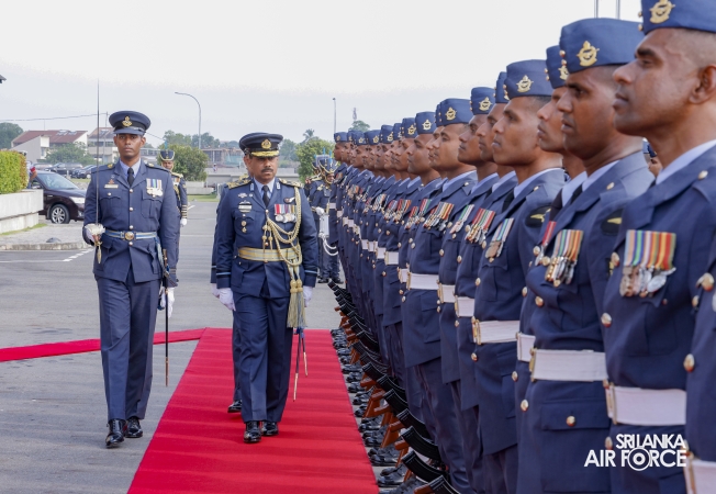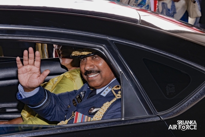 Subsequently, he was accorded a Ceremonial Guard of Honour by the SLAF Colour Wing before departing from Air Force Headquarters at Defence Headquarters Complex for the last time.