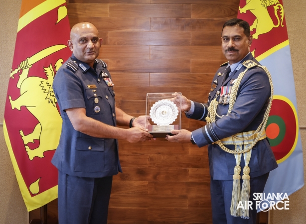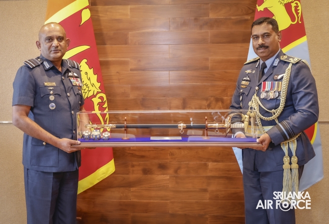 Air Vice Marshal Wickremaratne made an official farewell call on the Commander of the Air Force, Air Marshal Bandu Edirisinghe, at his office yesterday (01 April 2025). The Commander commended him for his dedicated service rendered to the nation and to the Sri Lanka Air Force in particular. The Commander also emphasized that he was one of the key stakeholders during times of need for our motherland and that his heroic history will remain etched in the annals of the SLAF. The Commander and Air Vice Marshal Wickremaratne exchanged mementos to mark the occasion.