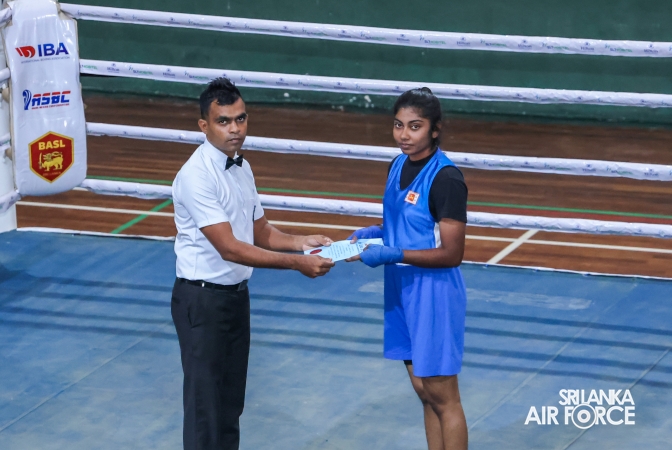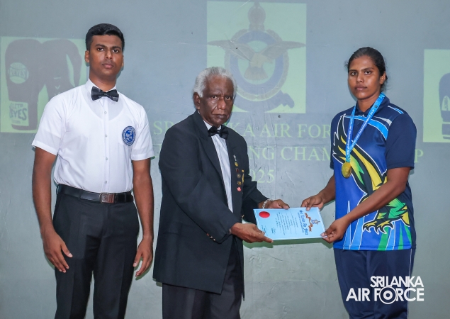 The final session and awards ceremony were held yesterday (04 April 2025) at the same venue. The event was conducted under 13 weight categories for men and 12 weight categories for women by the Boxing Referees and Judges Association of Sri Lanka under the new IBA rules and regulations. The overall Men’s Team Championship was secured by SLAF Base Ratmalana and the Women’s Team Championship was secured by SLAF Trade Training School Ekala, while SLAF Station Sri Jayewardenepura and SLAF Combat Training School Diyatalawa emerged as Runners-Up in the Men’s and Women’s categories, respectively.