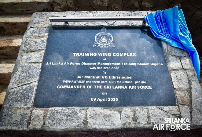 The Commander of the Air Force, Air Marshal Bandu Edirisinghe, conducted the Annual Commander’s Inspection at SLAF Disaster Management Training School Digana today (09 April 2025). Notably, this marks the first official inspection by the Commander following the elevation of the Digana Detachment into a fully fledged, separate SLAF establishment. The Commander was received by the Commanding Officer, Group Captain Lakmal Jayathilaka, where a ceremonial street line was accorded upon his arrival.