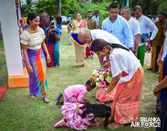 The event was graced by the presence of the Commander of the Air Force, Air Marshal Bandu Edirisinghe, accompanied by the Chairperson of the SLAF Seva Vanitha Unit, Mrs. Krishanthi Edirisinghe. Upon arrival, the Chief Guests were warmly received by the Base Commander of SLAF Base Katunayake, Air Commodore Asela Jayasekara.