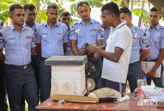 The SLAF Agro Unit conducted a one-day Beekeeping awareness programme yesterday (21 April 2025) at the SLAF Agro Unit Training Cell. The event was held under the supervision of the Commanding Officer of the Agro Unit, Group Captain Daminda Samarathunga, with the aim of educating and encouraging SLAF service personnel in the field of beekeeping.