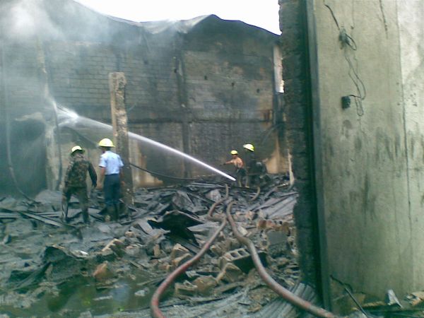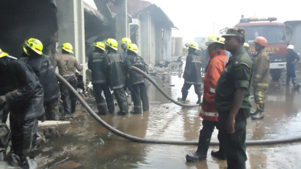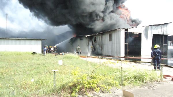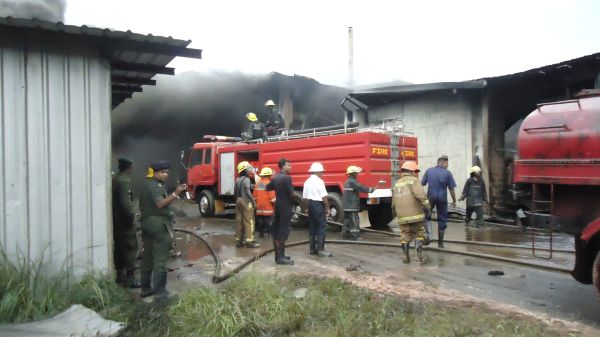 Sri Lankan Air Force Fighters fought valiantly to extinguish the fire which engulfed the Kerawalapitiya Shobers and Walkers Rubber Storage Facility on 21st June 2011.