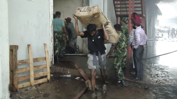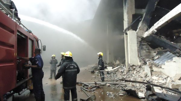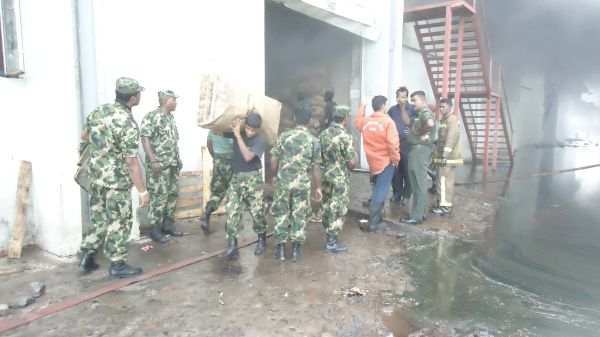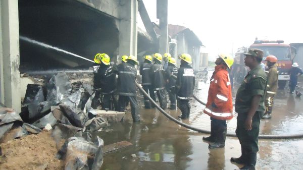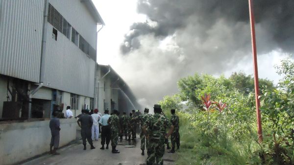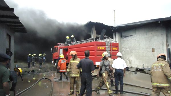 Although the Colombo Fire Brigade and other fire fighting units had been called in to quell the fire, it was the Air Force Fire Fighters who finally shouldered the responsibility of completely dousing the fire. The SLAF Fire crew tirelessly braved it out untill the afternoon of the 22nd to completely secure the industrial complex whereas all other fire fighting units had abandoned the course the previous night when the fire had died out temporarily, assuming no more was to be done.