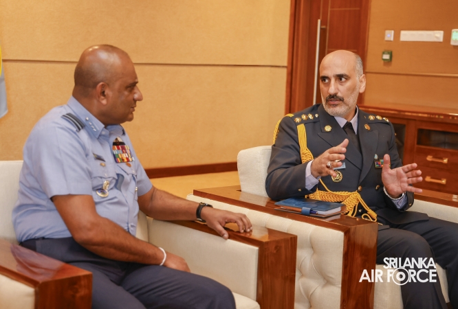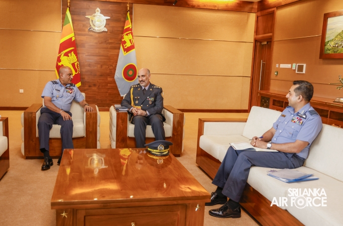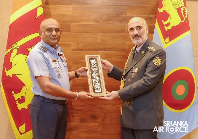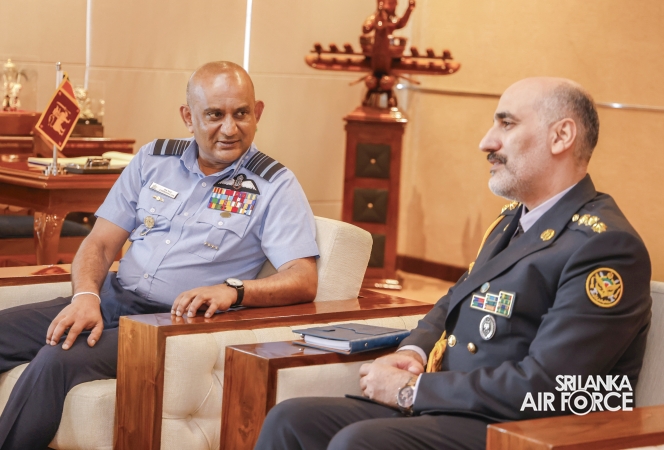 The Defence Attaché of Iranian Embassy in Sri Lanka, Staff Colonel Mohommad Mahboobi Fooladi called on the Commander of the Air Force, Air Marshal Bandu Edirisinghe at Air Force Headquarters today (23 April 2025).