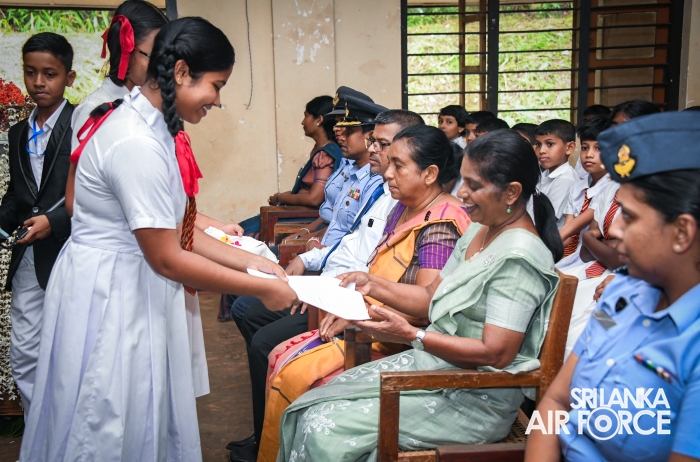 Under the guidance of the Chairperson of the SLAF Seva Vanitha Unit, Mrs. Krishanthi Edirisinghe, a special donation of musical instruments was made to H/Katuwana Central College, Katuwana, today (29 April 2025). In addition, the Unit distributed gift packs containing stationery items, exercise books, and other school accessories to the top performers of the recent scholarship examination.