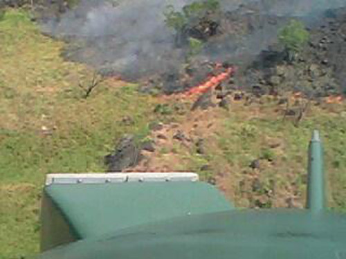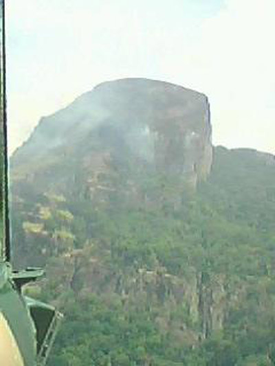 Amidst strong winds, a Bell 212 helicopter from No. 07 Squadron of SLAF Base at Hingurakgoda successfully controlled a major forest fire which erupted in Knuckles range, welangala, about 07Km from Hasalaka North west, this afternoon(27thJune 2011) .
