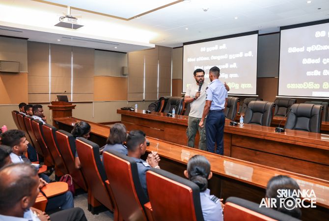 The fifth episode of a motivational drive for SLAF sportsmen and women in the sports disciplines of Aquatics, Badminton, Hockey and Weightlifting was organized under the guidance of the President Air Force Sports Council and Commander of the Air Force, Air Marshal Bandu Edirisinghe, today (10 May 2025) at Air Force Headquarters. The particular full-day programme was conducted by Mr. Bathiya Arthanayake, who is a professional motivator.