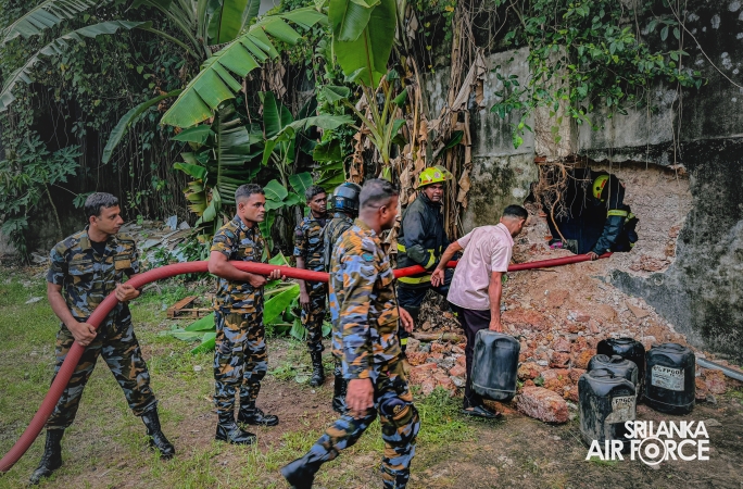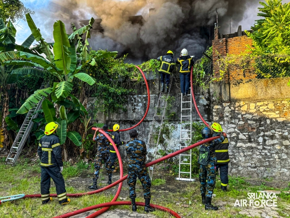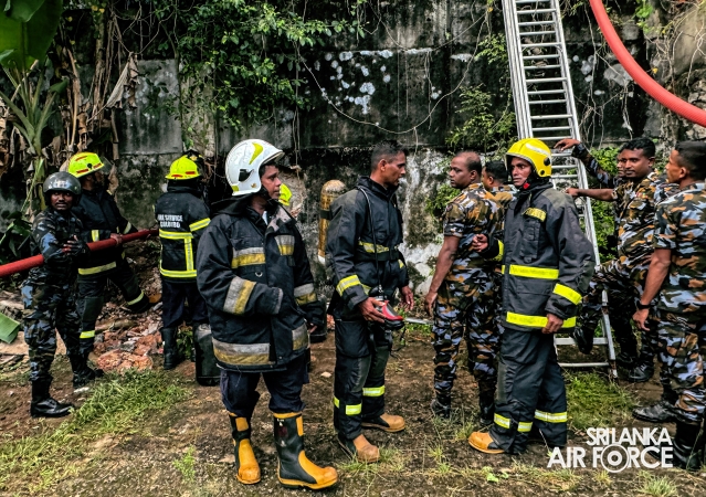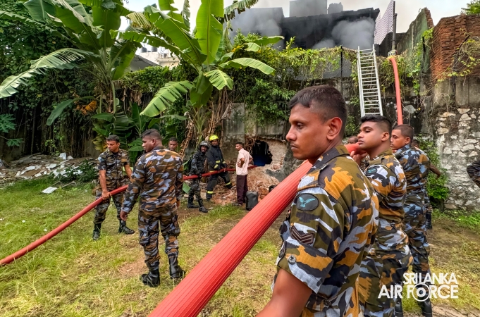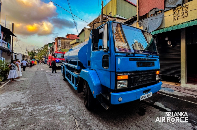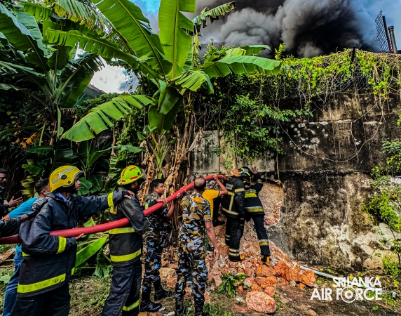 SLAF Station Colombo swiftly deployed a water bowser and a team of SLAF personnel. The team professionally assisted Fire Brigade personnel and contributed significantly to bringing the fire under control.