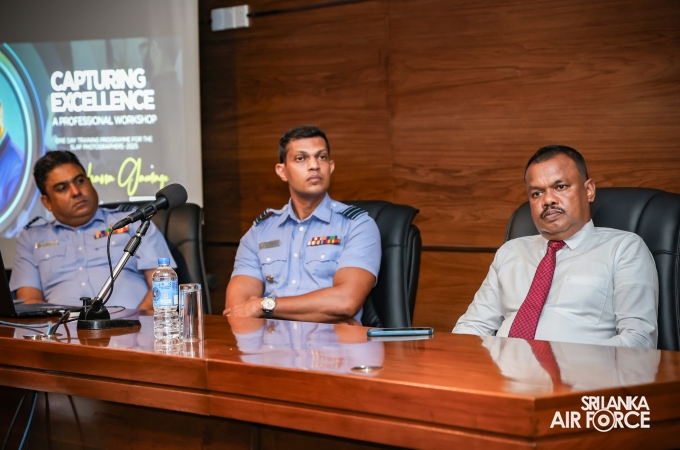 The SLAF Media Division hosted "Capturing Excellence: A Professional Workshop" a One-day professional workshop focused on Professional Photography Techniques and Editing Methods for Air Photo tradesmen and tradeswomen in the Sri Lanka Air Force. This initiative aims to enhance the professional skills of SLAF photographers, ensuring they stay on par with industry standards upheld by external photojournalists.