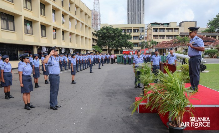 The Change of Command of SLAF Station Sri Jayewardenepura was held today (16 May 2025). The handing over/ taking over parade was conducted at the Station Colombo premises where the outgoing Commanding Officer, Air Commodore MPA Galappaththi RSP & bar, USP, Justice of Peace, ndc handed over the command to Air Commodore VGB Piyasiri.