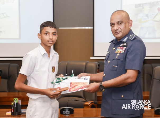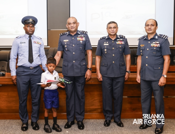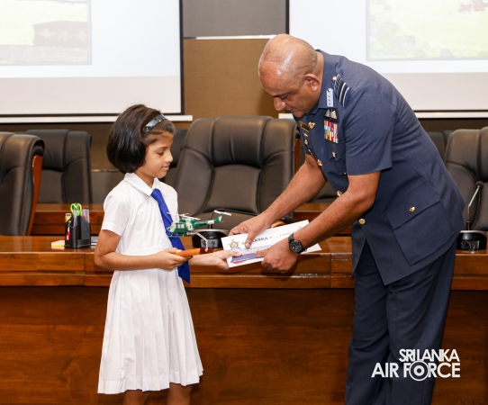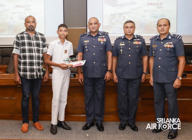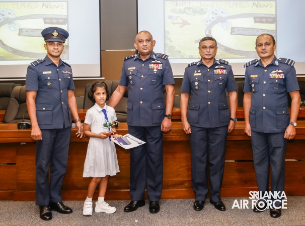 All five schoolchildren were presented with an aircraft replica model, a certificate, and gift vouchers. Service personnel who emerged as winners received cash prizes along with certificates. Additionally, ten consolation prize winners were selected and awarded cash prizes and certificates.