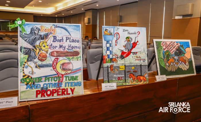 With the intension of enhancing the awareness of flight safety amongst all ranks of the SLAF, the Annual Flight Safety Poster Competition which was organized for the 16th occasion was conducted in par with the 74th anniversary celebrations. The Flight Safety Inspectorate extended its arm to invite School students to participate for the poster competition for the second time, under the direct guidance of the Chief of Staff.