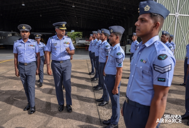 The traditional handing over/taking over parade took place at the wing premises, where Air Commodore WADC Wijesinghe, USP, MSc (Def & Strat Stu), BSc (Def Stu), AMIE (SL), A Eng, psc, officially handed over command to Group Captain MS Kumarage, USP, BSc (Def Stu).