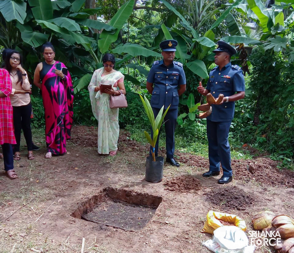 As part of the event, Wing Commander Prasanna Rupasinghe delivered an informative lecture on the significance of coconut cultivation, covering both theoretical knowledge and practical insights into establishing and managing a successful plantation. The session also included a hands-on demonstration on land preparation and the planting of coconut seedlings.