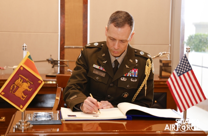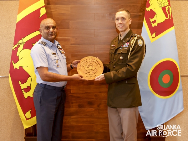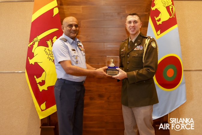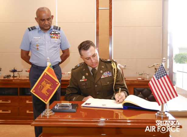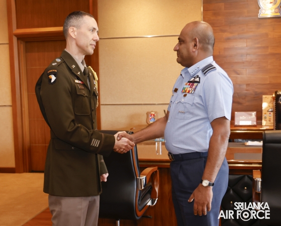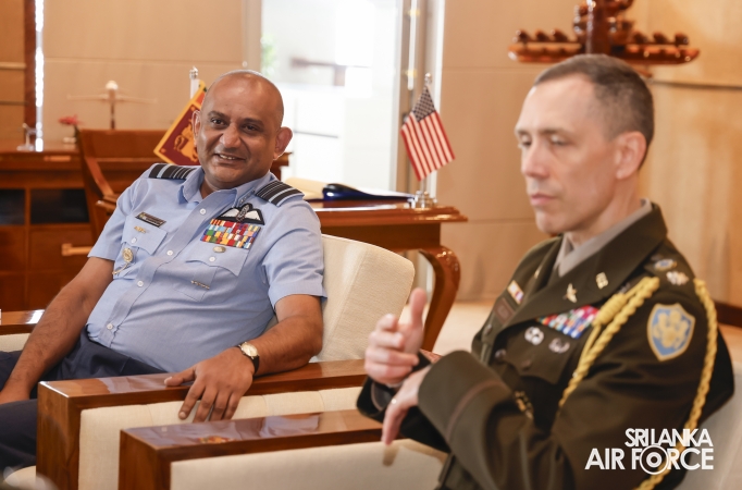 The delegation from the Embassy of United States of America in Sri Lanka, called on the Commander of the Air Force, Air Marshal Bandu Edirisinghe at Air Force Headquarters today (18 June 2025). The delegation was made up by Outgoing Defence Attaché, Lieutenant Colonel Anthony Nelson and the newly appointed Defence Attaché, Lieutenant Colonel Matthew House.