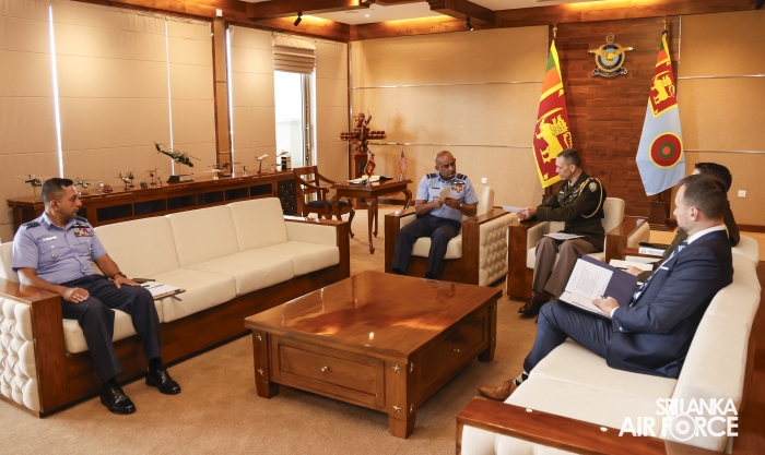 During the cordial discussion that ensued, the Commander conveyed his gratitude to the Outgoing Defence Attaché, Lieutenant Colonel Anthony Nelson for his cooperation with the Sri Lanka Air Force during his tenure and also made a formal welcome to the newly appointed Defence Attaché, Lieutenant Colonel Matthew House.