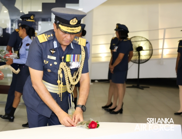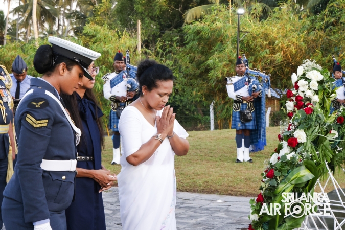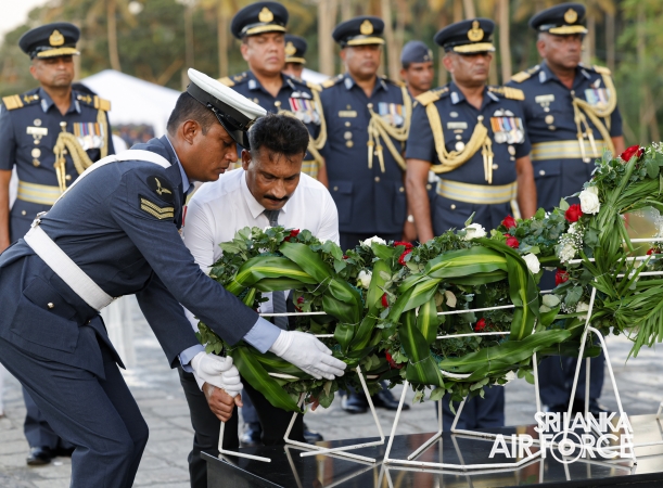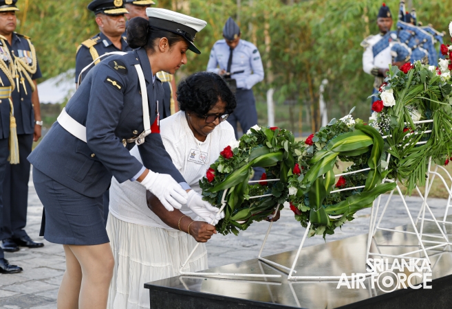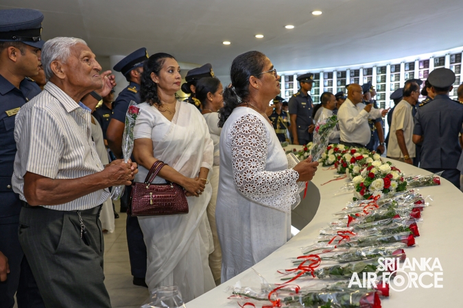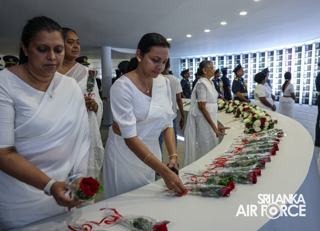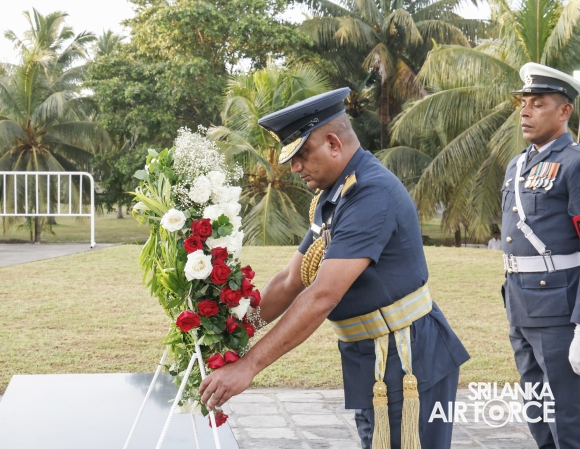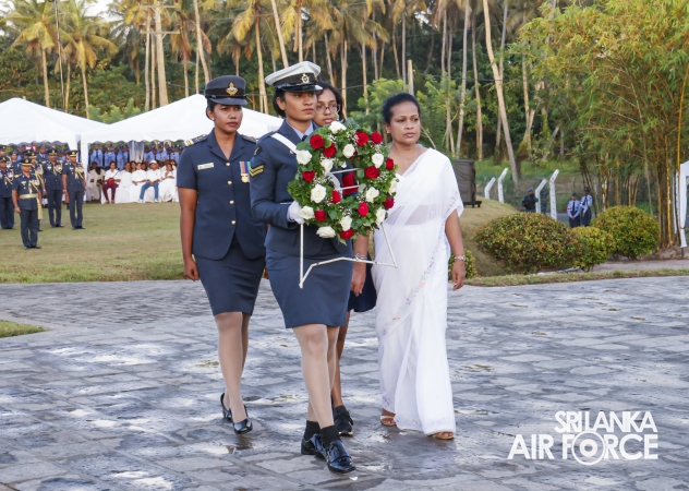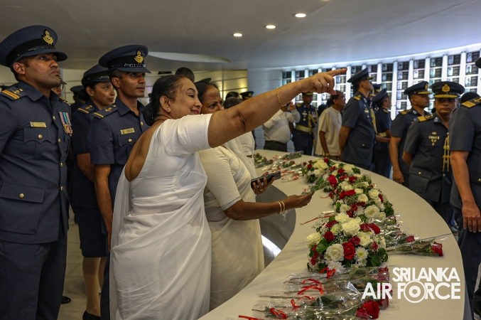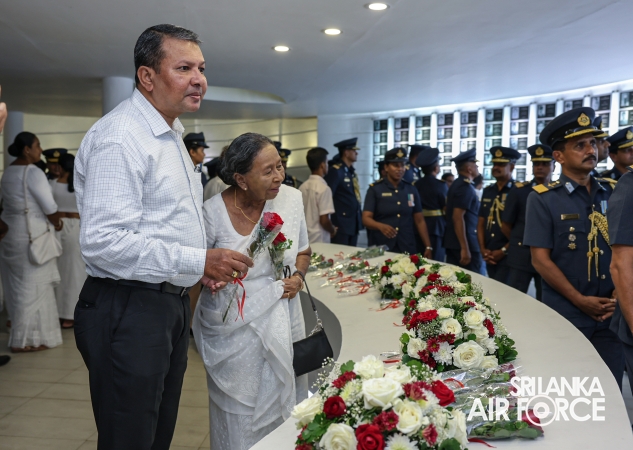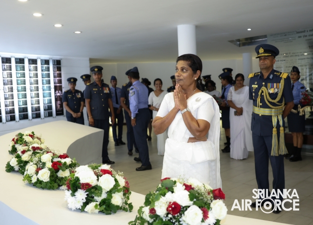 The Commander of the Air Force offered the first floral tribute at the memorial in memory of the supreme sacrifice made by the SLAF patriots. The event was attended by the Chief of Staff, Members of the Air Force Board of Management, Commanding Officer SLAF Trade Training School Ekala, Senior Officers, Command Master Warrant Officer, other ranks and most importantly, beloved family members of fallen war heroes who followed suit.