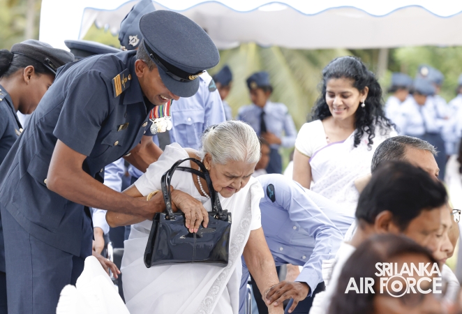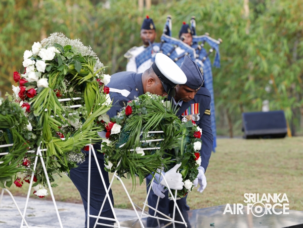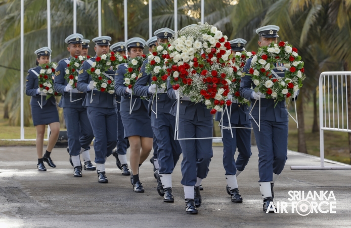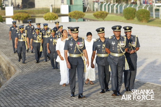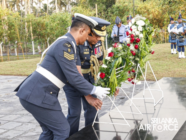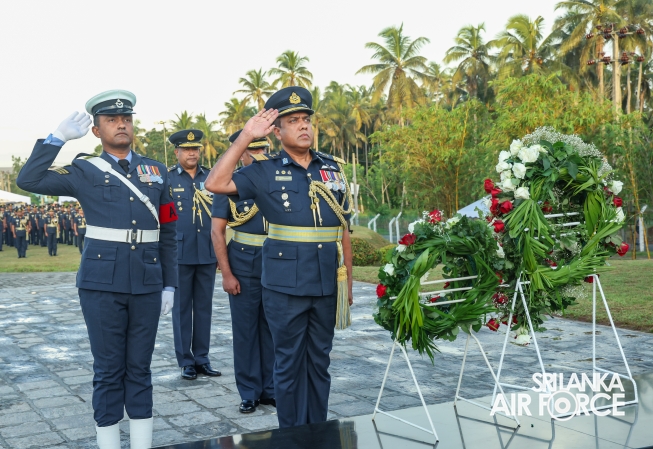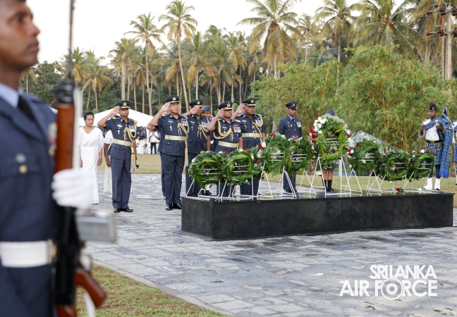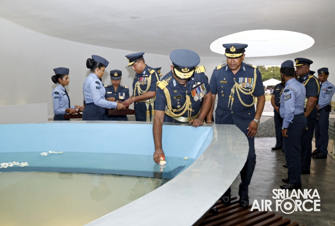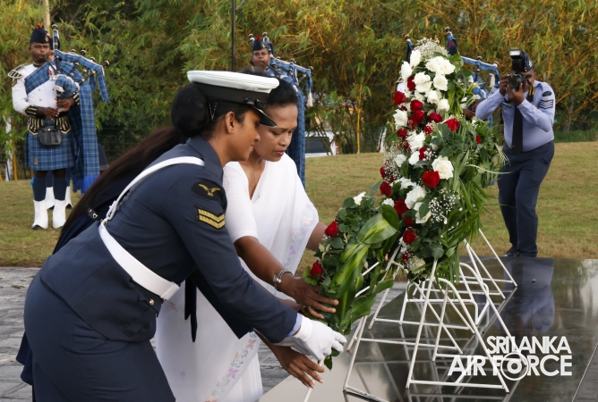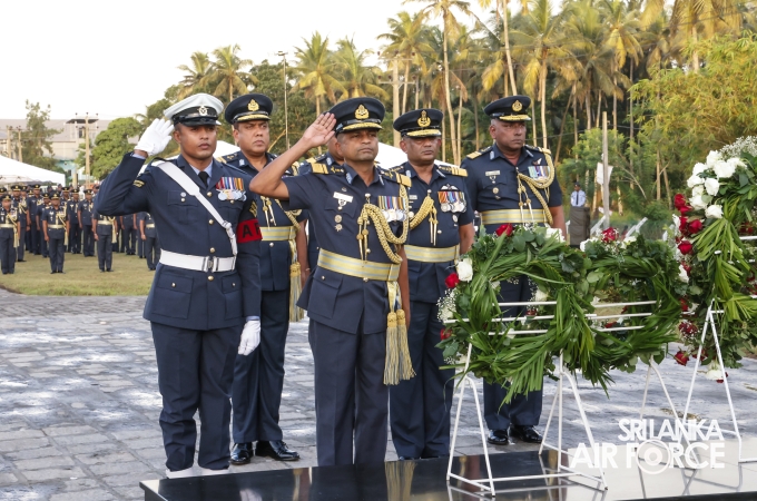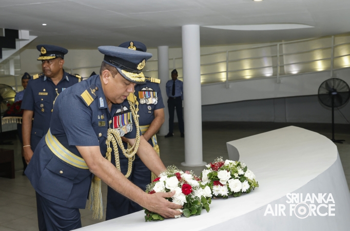 The Commander of the Air Force offered the first floral tribute at the memorial in memory of the supreme sacrifice made by the SLAF patriots. The event was attended by the Chief of Staff, Members of the Air Force Board of Management, Commanding Officer SLAF Trade Training School Ekala, Senior Officers, Command Master Warrant Officer, other ranks and most importantly, beloved family members of fallen war heroes who followed suit.