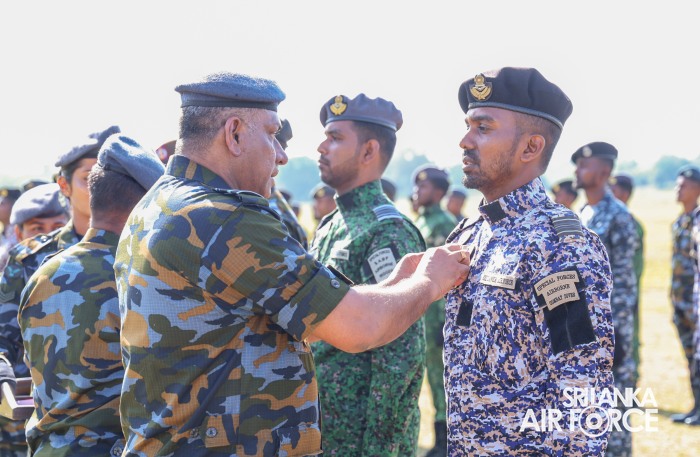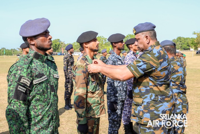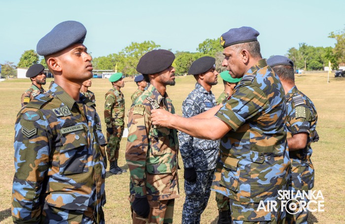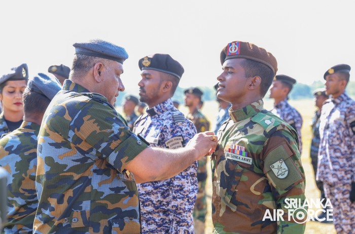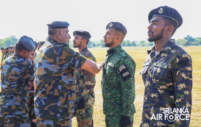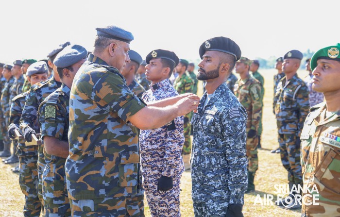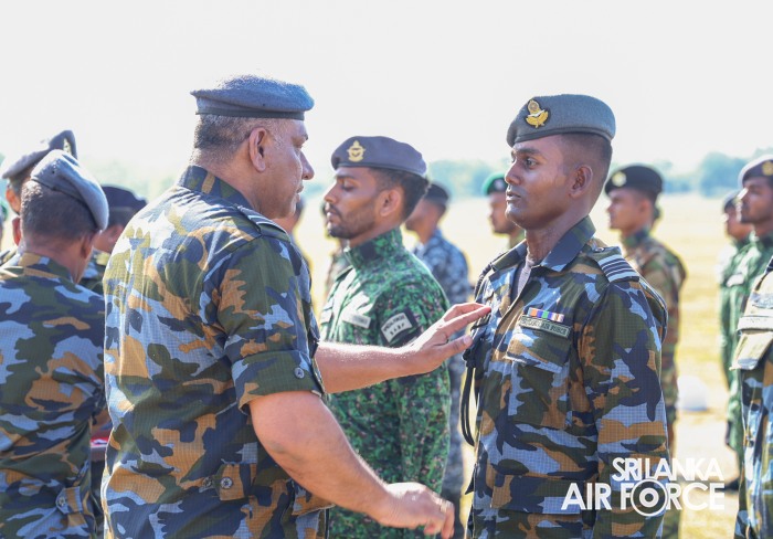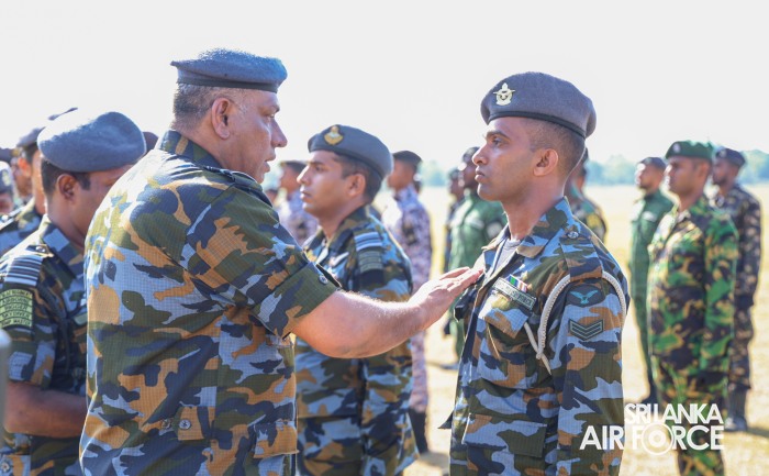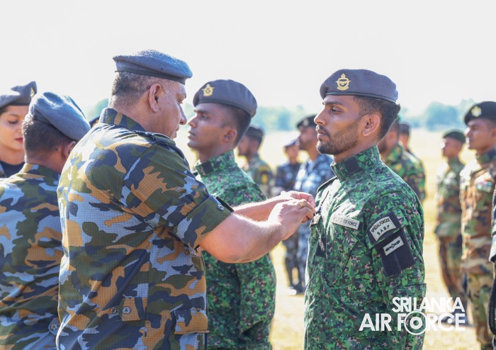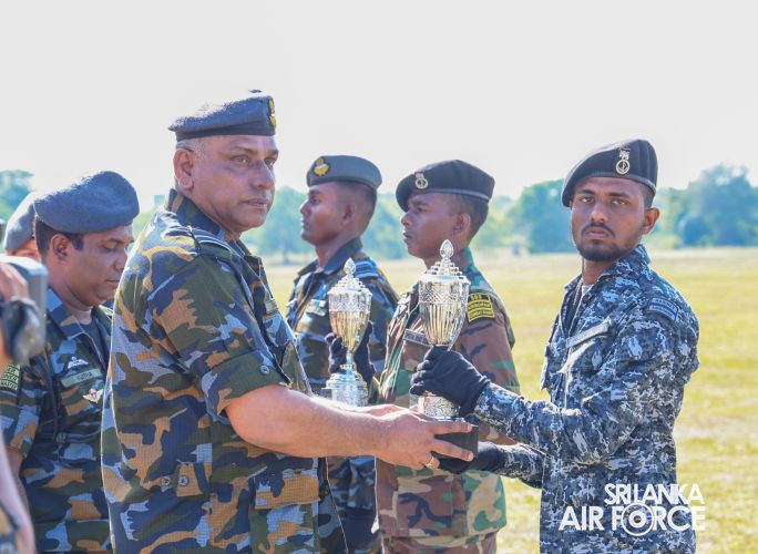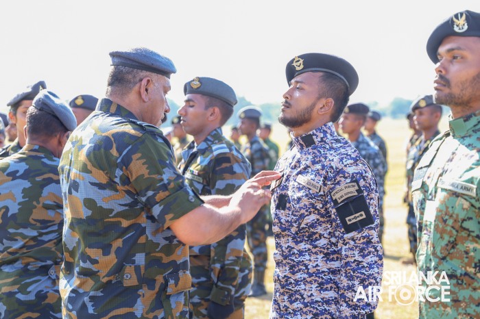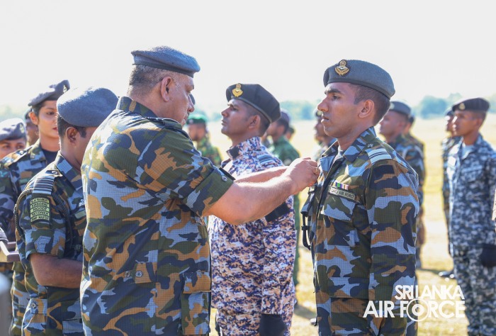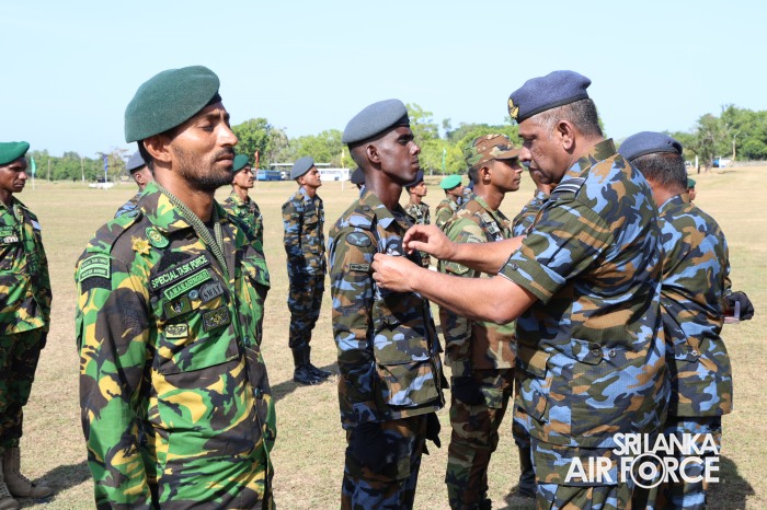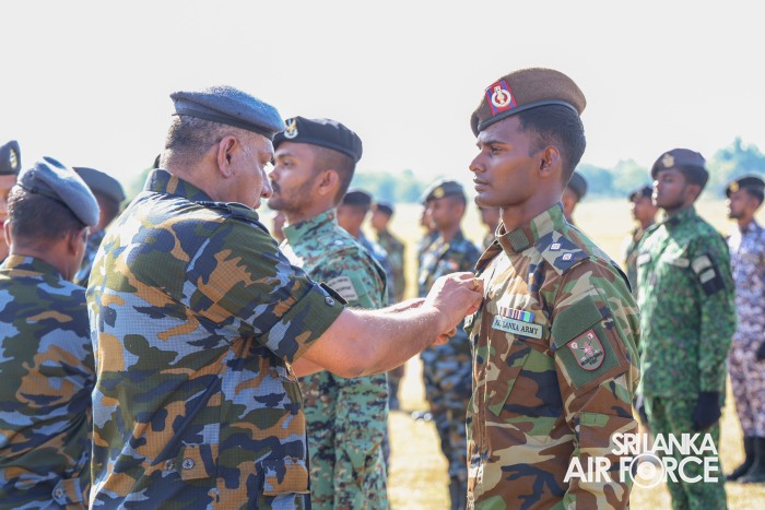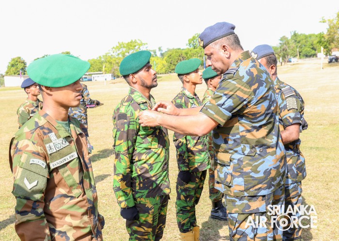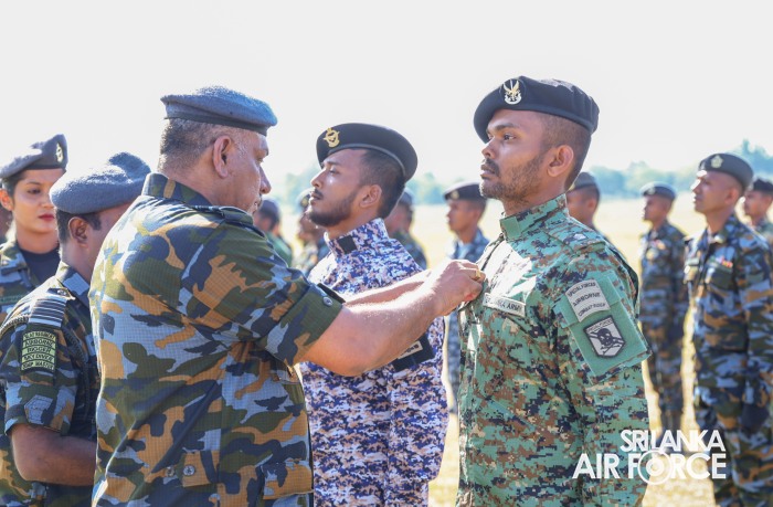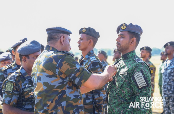 Flight Lieutenant HMCV Madushanka, Able Seaman JMCL Jayasundara (SL Navy), COM WMPR Weerakoon (SL Navy) and Leading Seaman IDK Madushanka (SL Navy) were recognized as the Best Paratroopers of the No. 56, 57 and 59 Basic Airborne Courses and the No. 16 Military Free Fall Course.