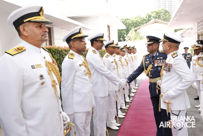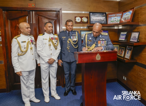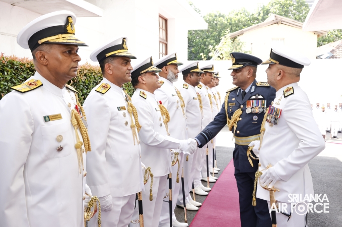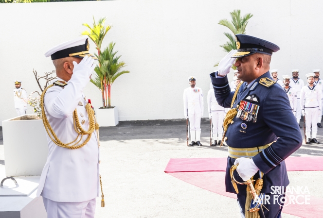 The Commander of the Air Force, Air Marshal Bandu Edirisinghe, made his official call on the Commander of the Navy, Vice Admiral Kanchana Banagoda, at the Navy Headquarters today (02 July 2025).
