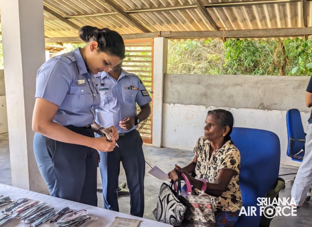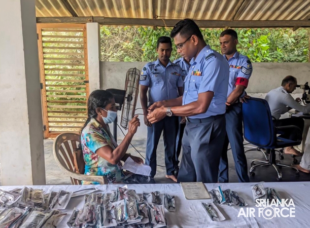 An eye clinic and free distribution of spectacles programme was held at Meththarama Temple, Kandayaya, in collaboration with the SLAF Seva Vanitha Unit and I-EPEX (Pvt) Ltd. The event was organized by the Seva Vanitha Unit of SLAF Station Palavi under the guidance and supervision of the Commanding Officer of SLAF Station Palavi, Air Commodore GSN Priyadarshana.