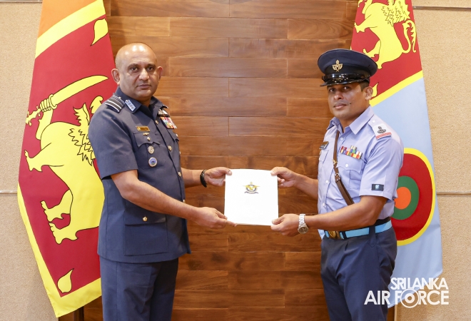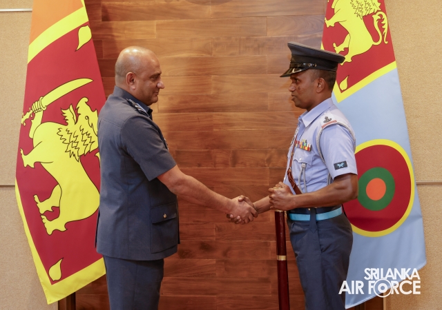 The Outgoing Command Master Warrant Officer of the SLAF, Master Warrant Officer G Wickremasekara handed over his appointment of Command Master Warrant Officer to Master Warrant Officer M Damith. The Commander appreciated the valuable and dedicated service of Master Warrant Officer G Wickremasekara during his career in the Air Force and as the Command Master Warrant Officer of the SLAF as well. Master Warrant Officer G Wickremasekara was presented with a letter of appreciation and a memento by the Commander as a token of appreciation.