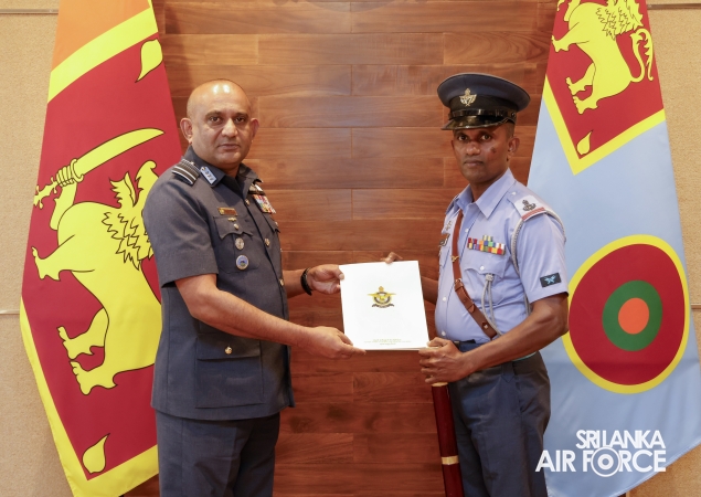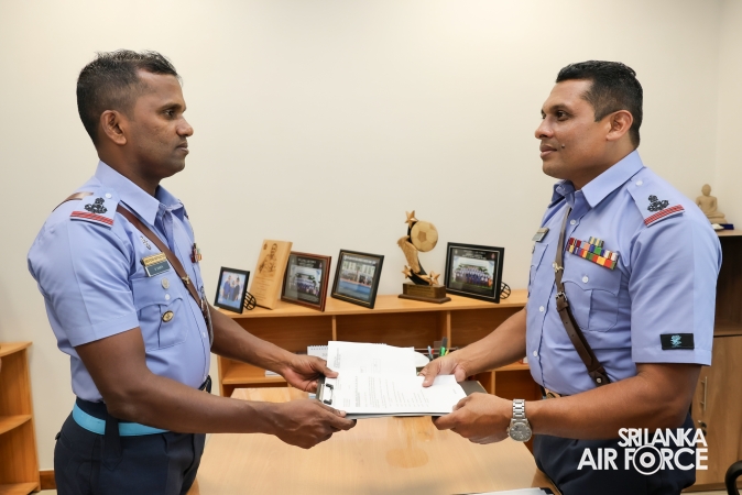 Master Warrant Officer M Damith took over duties as the Command Master Warrant Officer (CMWO) of the Sri Lanka Air Force under the auspices of the Commander of the Air Force, Air Marshal Bandu Edirisinghe today (02 July 2025) at Air Force Headquarters. The Commander handed over the appointment letter to Master Warrant Officer M Damith this morning at the Commanders Office.