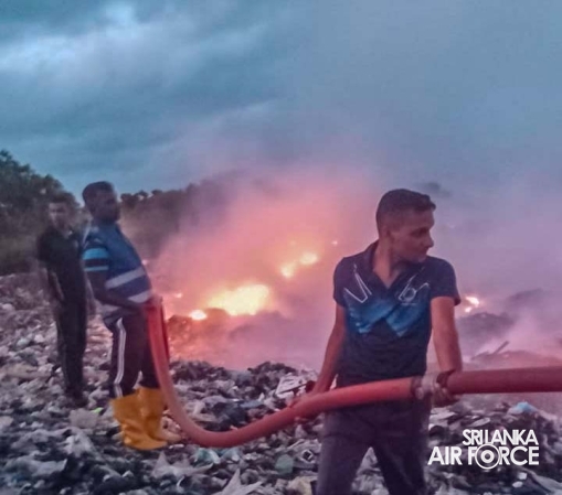 SLAF FIREFIGHTERS ASSIST IN CONTAINING GARBAGE DUMP FIRE IN PUTTALAM