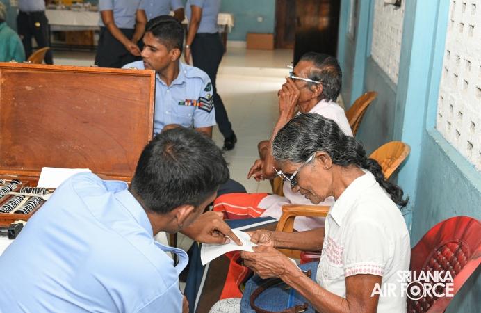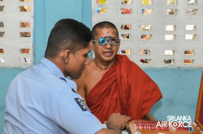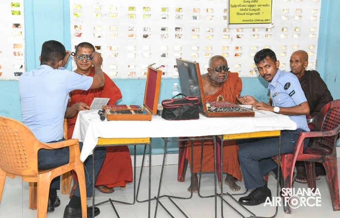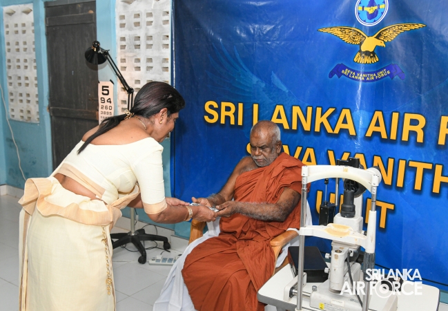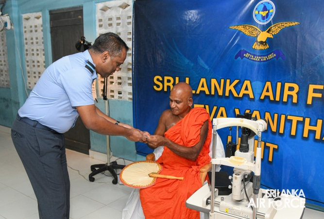 An eye clinic was held yesterday (07 July 2025) at the Namal Pokuna Temple in Dimbulagala, providing reading glasses to individuals in need. This community service initiative was organized under the guidance of the Chairperson of the Air Force Seva Vanitha Unit, Mrs. Krishanthi Edirisinghe, with the reading glasses generously donated by the Japan-Sri Lanka Friendship Association.