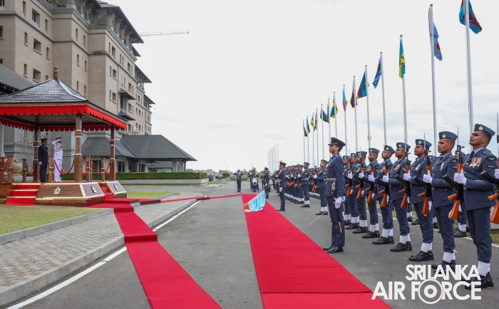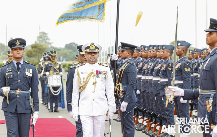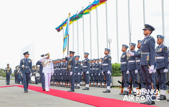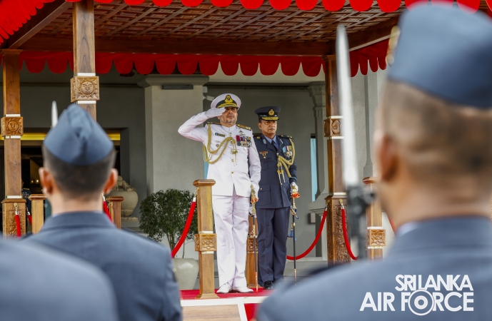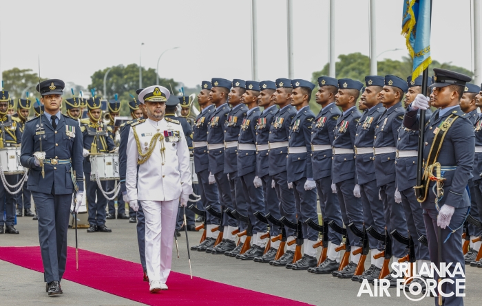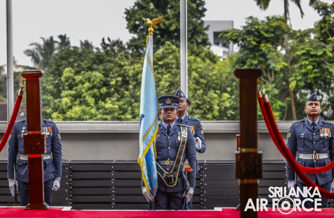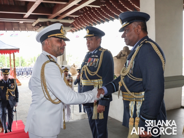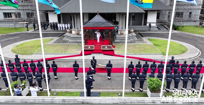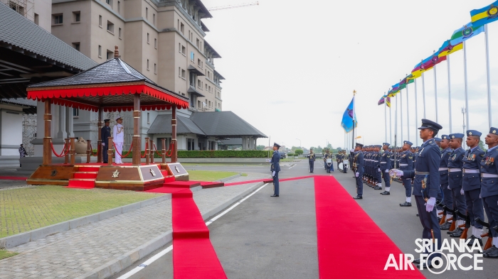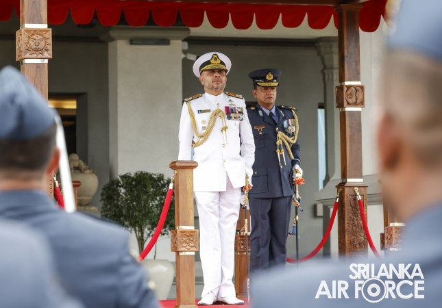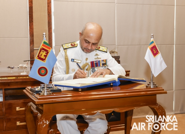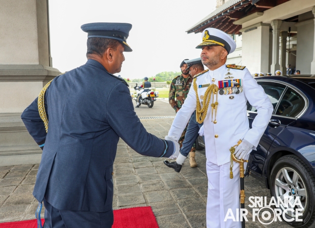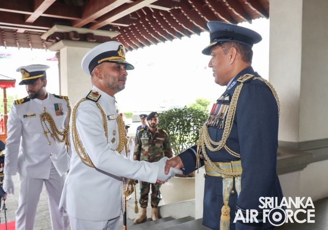 Upon his arrival, the Navy Chief was warmly received by the Commanding Officer of SLAF Station Sri Jayewardenepura, Air Commodore Buddika Piyasiri and was accorded a Guard of Honour presented by the SLAF Colour Wing.