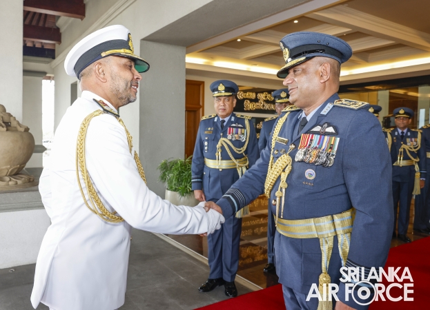 Commander of the Navy, Vice Admiral Kanchana Banagoda, paid an official visit to Air Force Headquarters and called on the Commander of the Air Force, Air Marshal Bandu Edirisinghe, today (09 July 2025) at Air Force Headquarters, Sri Jayewardenepura.