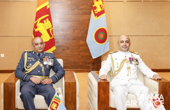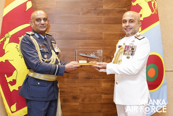 During the meeting, Vice Admiral Banagoda and Air Marshal Edirisinghe engaged in discussions of mutual interest, including the strengthening of inter-service cooperation. Key topics included the planning and conduct of joint training exercises aimed at enhancing maritime security, interoperability and regional stability.