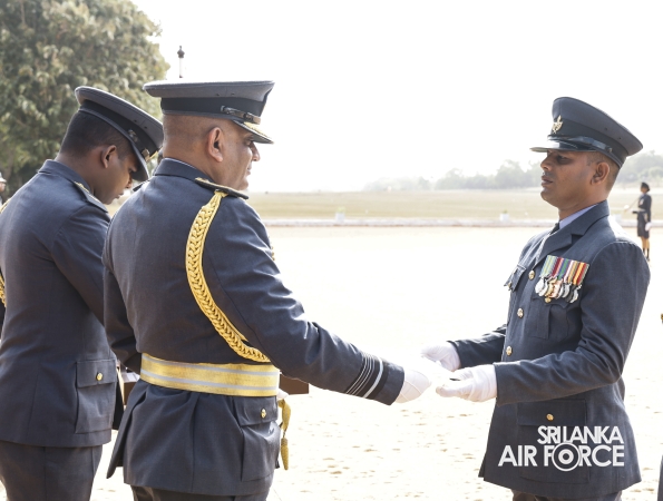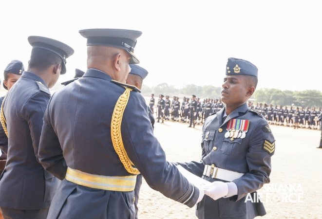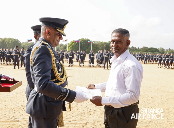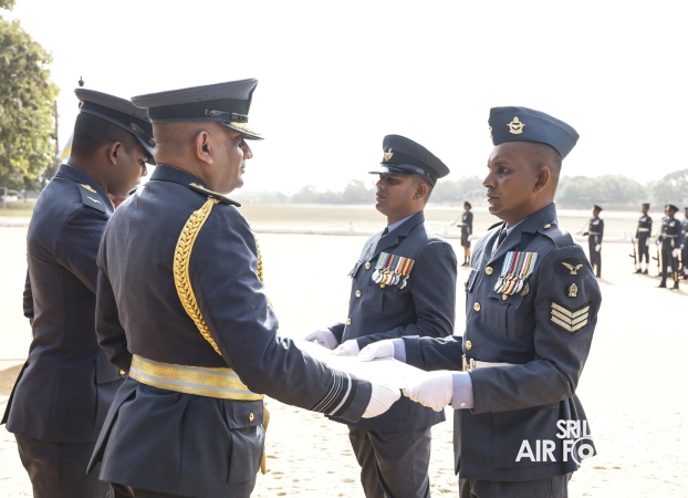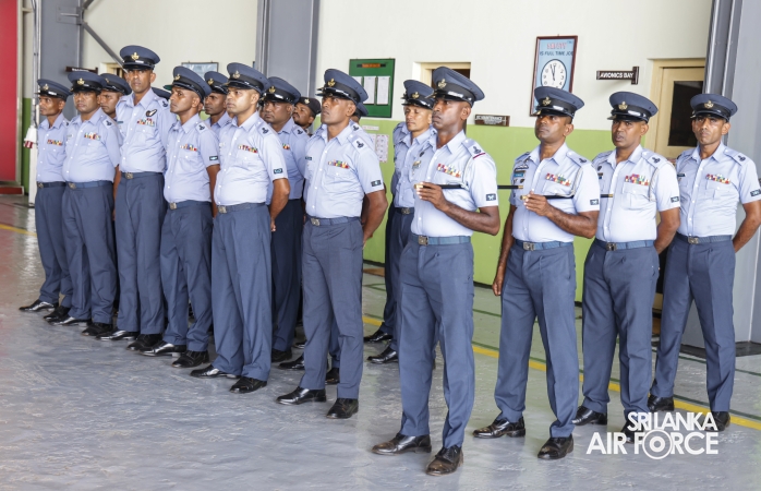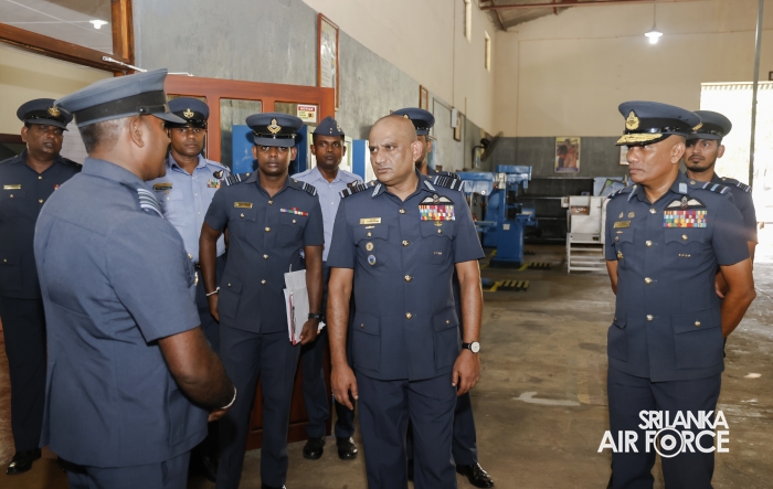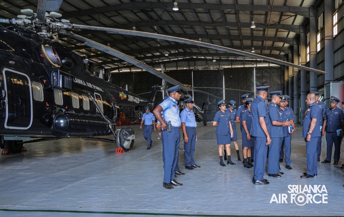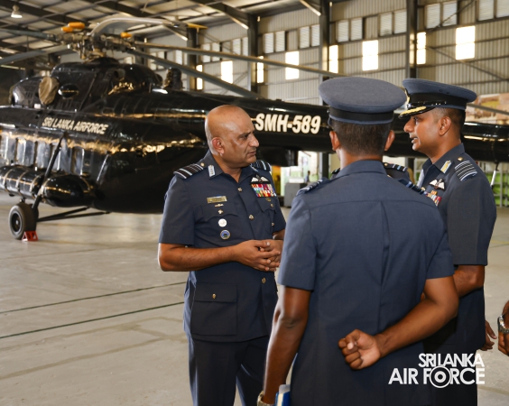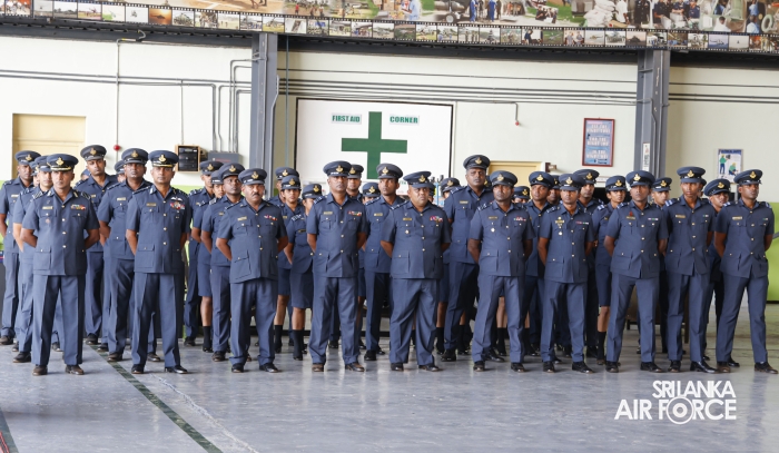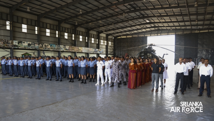 Following the inspection, the Commander addressed all ranks and civilian personnel at the No. 6 Squadron Hangar. He commended them for their dedication to the Sri Lanka Air Force and encouraged them to continue striving for higher standards of discipline and performance. Emphasizing the importance of self-discipline and professionalism, he reminded them that the reputation of the Air Force and the fulfillment of its responsibilities toward national development rest on the commitment of every member.