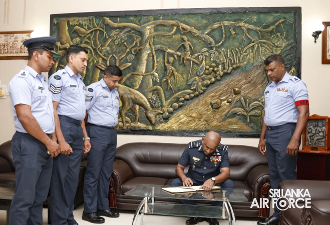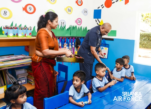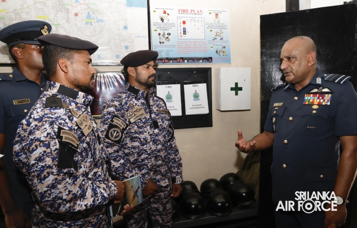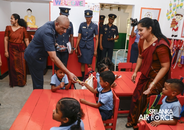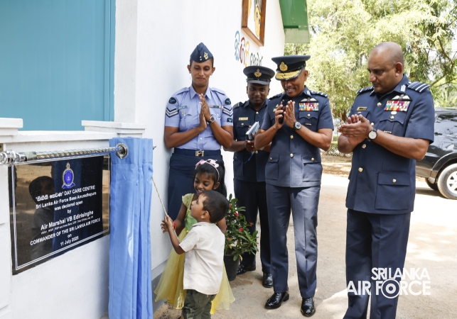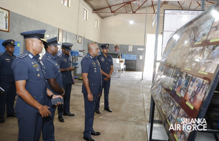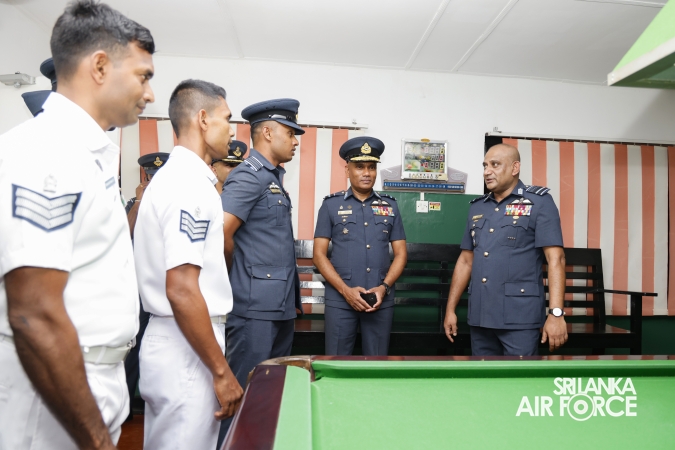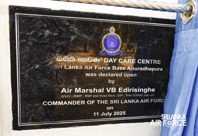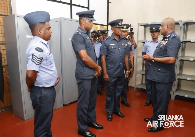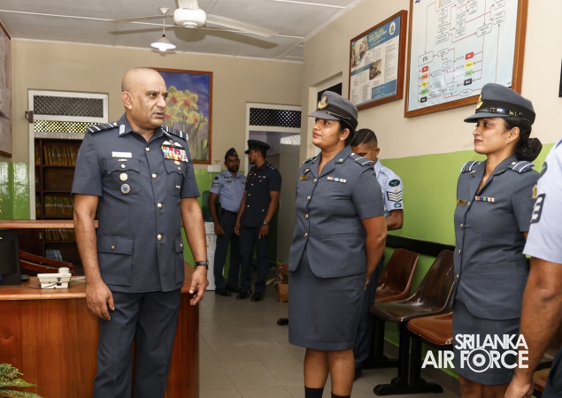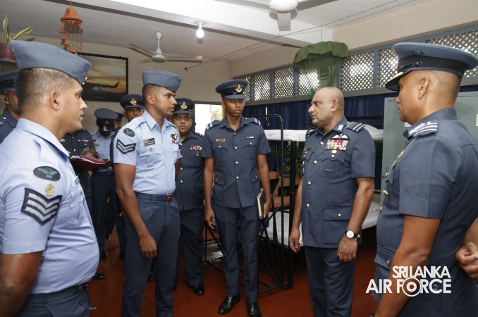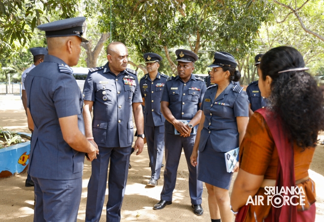 During the inspection, the Commander visited all areas of the base, including the Base Headquarters, No. 6 Squadron, No. 21 Regiment Wing, No. 33 Land-Based Air Defence Wing, Supply Section, Air Movement Squadron, and the Eagles Heritage Golf Club. Additionally, the Commander officially inaugurated the newly constructed ‘Singithi Sewana’ Day Care Centre, a facility introduced to enhance the base's welfare services.