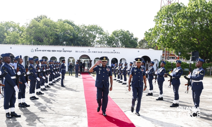The Commander of the Air Force, Air Marshal Bandu Edirisinghe, conducted the Commander’s Inspection of SLAF Base Anuradhapura today (11 July 2025). Upon his arrival, he was received by the Base Commander, Air Commodore Poojana Gunathilake.