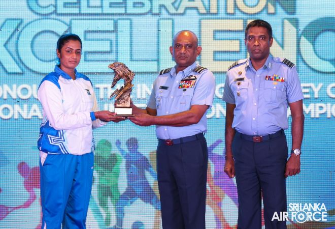 Among the internationally recognized athletes, Aircraftman 2 Under Training Tharanga PR was commended for securing a gold medal at the Perth Track Classic in Australia with a throw of 83.27m, and a bronze medal at the Neeraj Chopra Classic 2025 in Bengaluru, India with a throw of 84.34m. At the Asian Athletics Championship 2025, Aircraftwoman 2 Under Training Fernando MANH contributed to winning two bronze medals in the Women’s 4x400m Relay and Mixed 4x400m Relay events.
