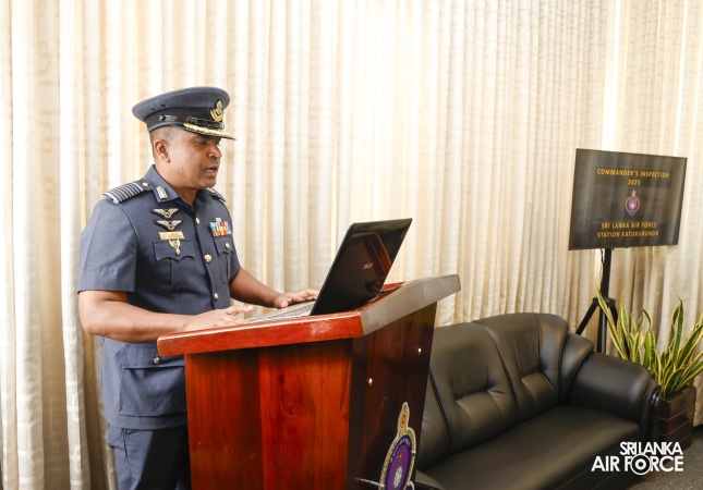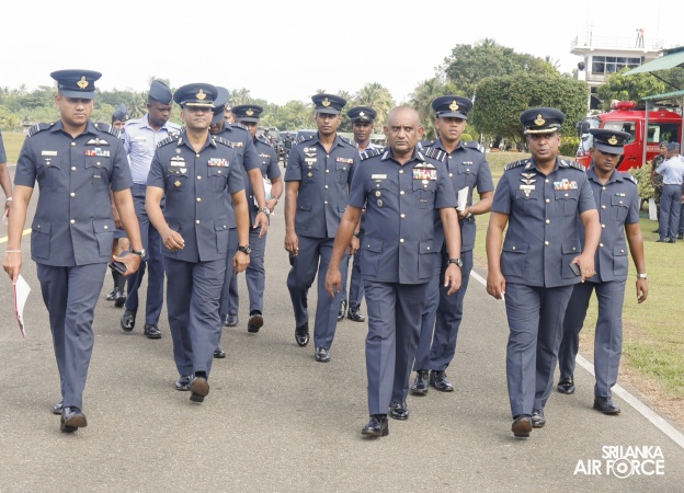 The Commander of the Air Force, Air Marshal Bandu Edirisinghe conducted the Commander's Inspection of SLAF Station Katukurunda today (05 August 2025). The Commanding Officer of the Station, Group Captain MP Abeywickrama received the Commander on his arrival.