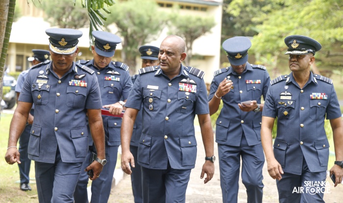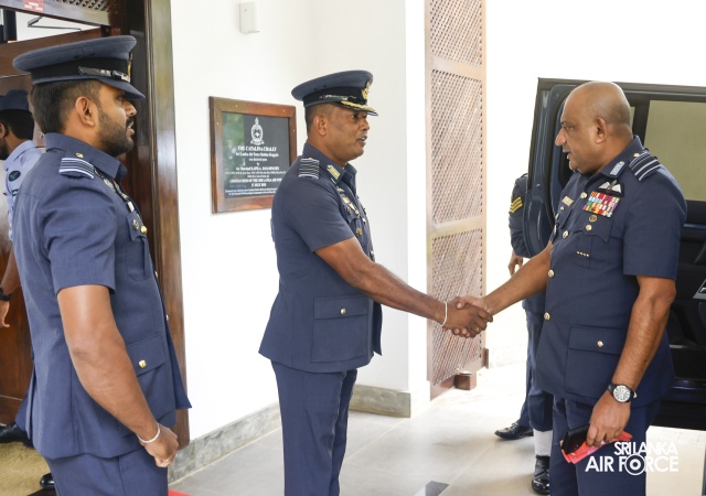 The Commander of the Air Force, Air Marshal Bandu Edirisinghe, conducted the Commander’s Inspection of SLAF Station Koggala during the evening hours today (05 August 2025). Upon his arrival, the Commander was received by the Commanding Officer of SLAF Station Koggala, Group Captain Priyadarshana Hettiarachchi.