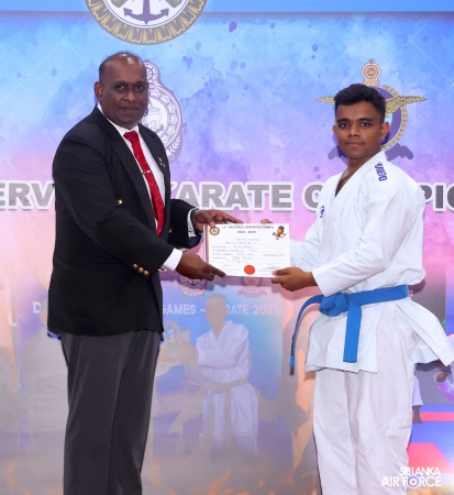 The event was graced by Major General RD Sallay, who attended as the Chief Guest. The finals were also witnessed by the Chairman of SLAF Karate, Air Vice Marshal Vajira Senadheera, the Secretary of SLAF Karate, Group Captain Jayarathne Amarasinghe. members of the Air Force Sports Council, senior officers and other ranks.