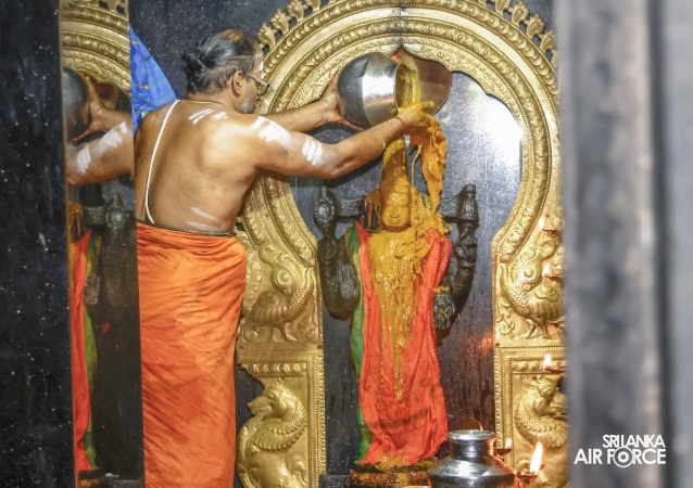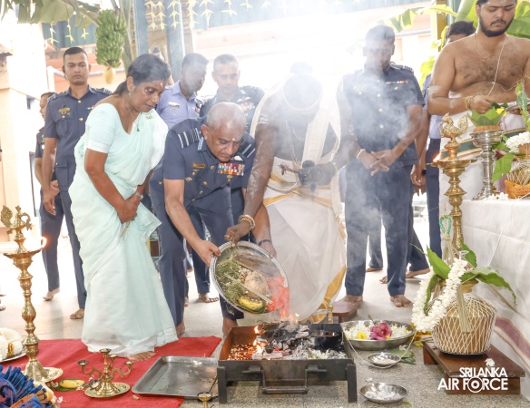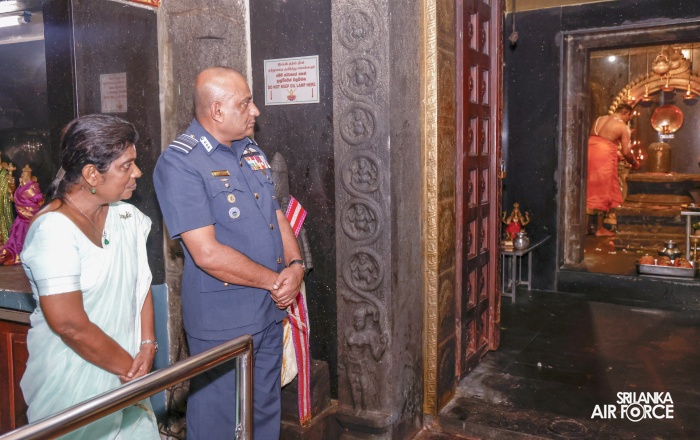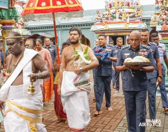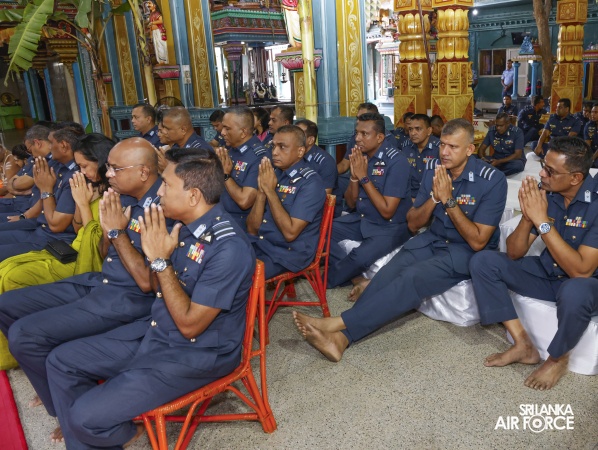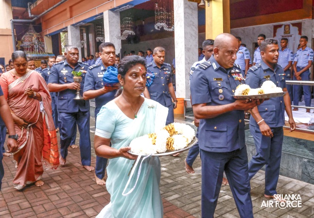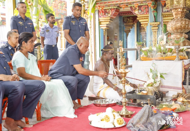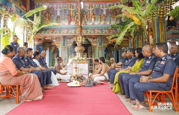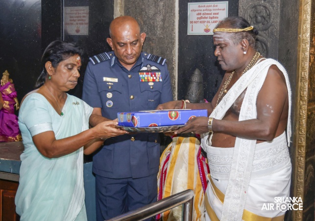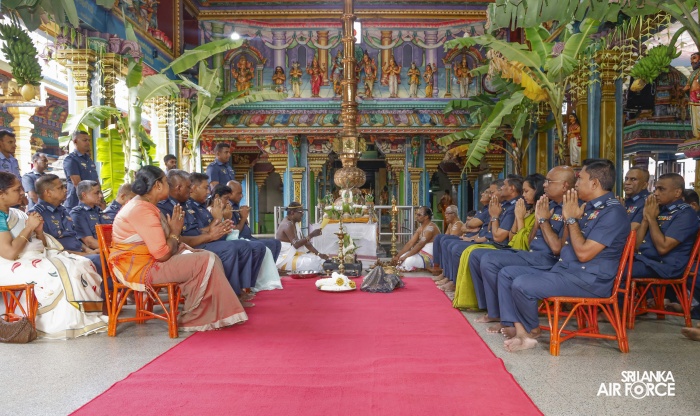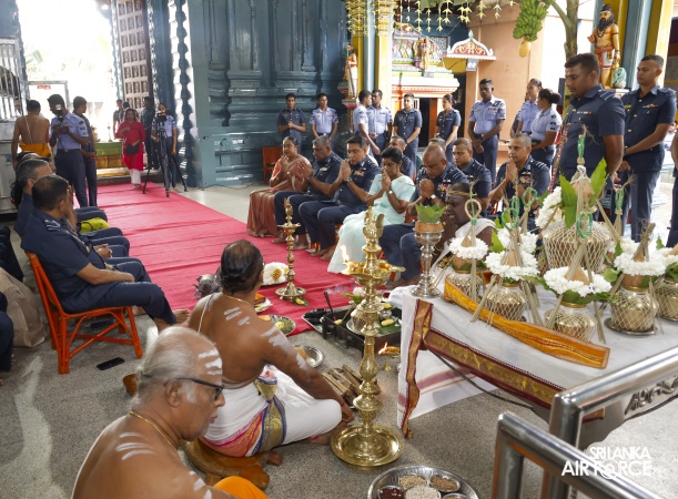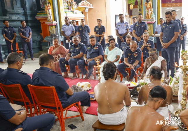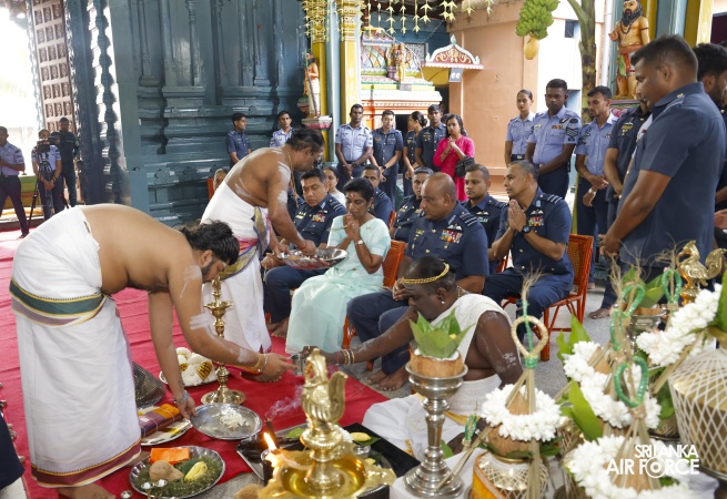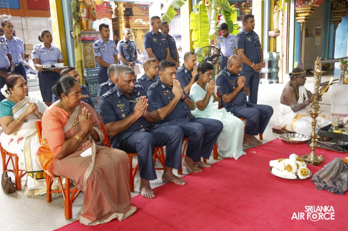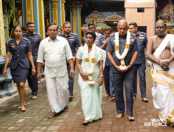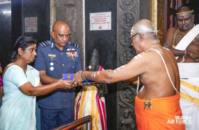 The Annual SLAF Hindu Religious Ceremony was held at the Captains Garden Sri Kailasanathar Swamy Devasthanam, Colombo 10, today (06 August 2025) with the participation of the Commander of the Air Force, Air Marshal Bandu Edirisinghe and Chairperson of the SLAF Seva Vanitha Unit, Mrs. Krishanthi Edirisinghe.