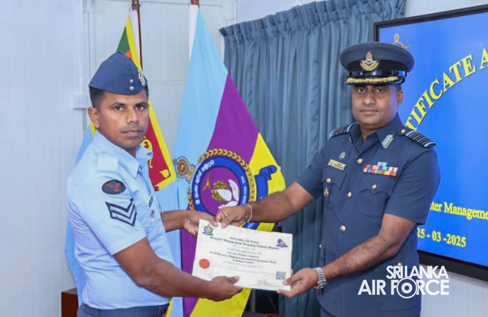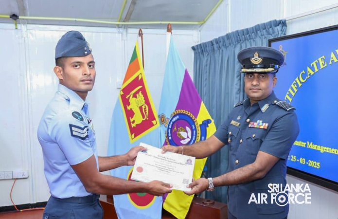 The Commanding Officer Disaster Management Training School, Group Captain DGPL Jayathilaka, Officer Commanding Training, Wing Commander APUR Dharmasiri, all officers and other ranks of the School were also attended for the certificate awarding ceremony.
