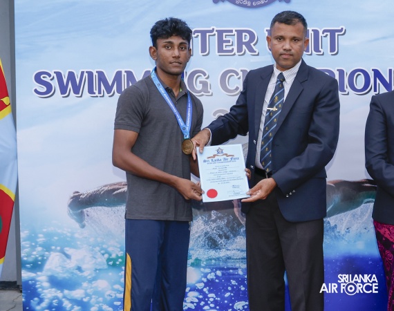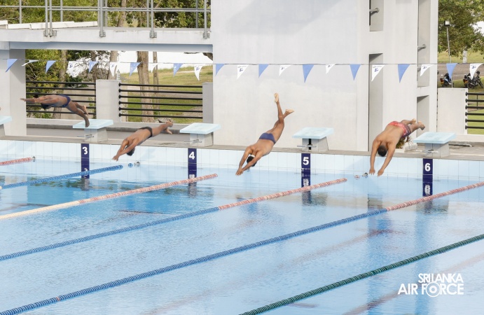 The closing ceremony was graced by the Deputy Chief of Staff, Air Vice Marshal Damian Weerasinghe, as the Chief Guest. The occasion was further honored by the presence of the Chairman Air Force Aquatic Sports, Air Vice Marshal Deshapriya Silva, President Pentathlon at Ministry of Sports and Youth Affairs, Mr. Nishantha Piyasena, members of the Air Force Sports Council, officers, representatives of national aquatic sports bodies and other distinguished invitees, who witnessed the exciting finals and the presentation of awards.
