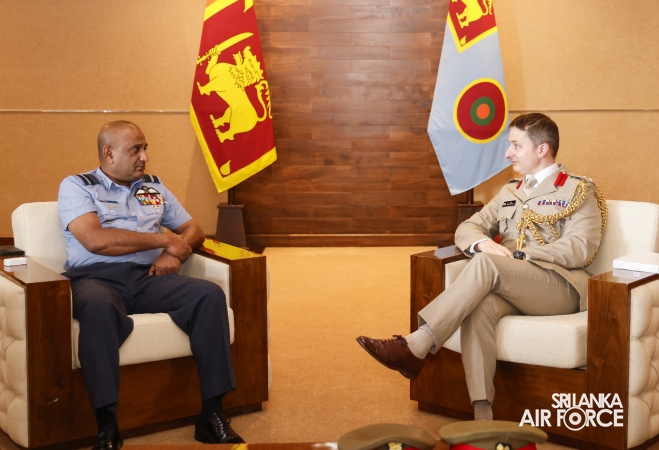 During the cordial discussion that ensued, the Commander conveyed his gratitude to the Outgoing Defence Advisor, Colonel Darren Woods for his cooperation with the Sri Lanka Air Force during his tenure and also made a formal welcome to the newly appointed Defence Advisor, Colonel Keith Miles.